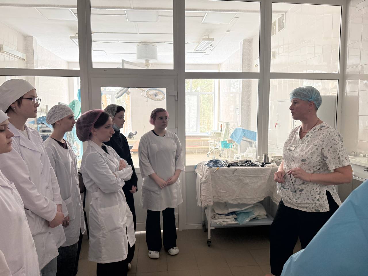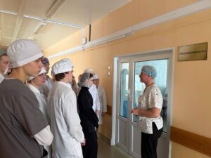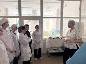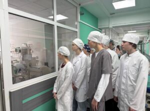 В ходе визита будущие медицинские работники ознакомились с особенностями организации деятельности операционного блока, отделения анестезиологии и реанимации, а также первого хирургического отделения стационара.