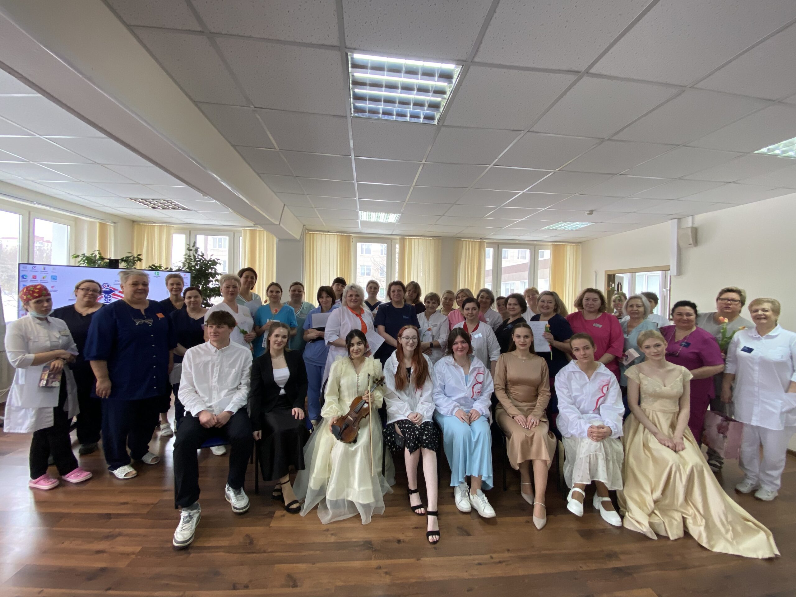 Студенты также приняли участие во Всероссийской акции «Вам, любимые!». Волонтеры-медики поздравляли женщин медиков, выражая благодарность за их труд, доброту и заботу о пациентах. Медицинским работникам дарили цветы, открытки и теплые слова благодарности, а также подготовили творческие поздравления — стихи, музыкальные композиции и танцевальные номера.