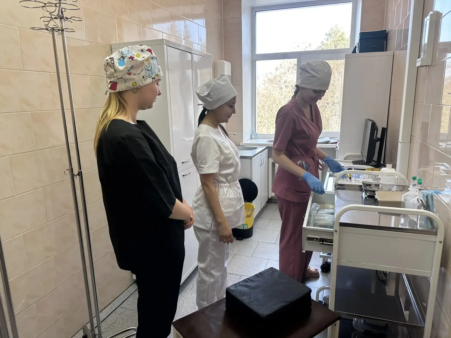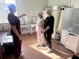 В ходе экскурсии студенты посетили терапевтический, офтальмологический, процедурный и физиотерапевтический кабинеты, а также кабинет функциональной диагностики и профилактики. Старшие медицинские сестры отделений подробно рассказали о специфике работы постовой и процедурной медицинской сестры, продемонстрировали оснащение и оборудование перевязочных и процедурных кабинетов, а также познакомили студентов с современными методами обследования пациентов.