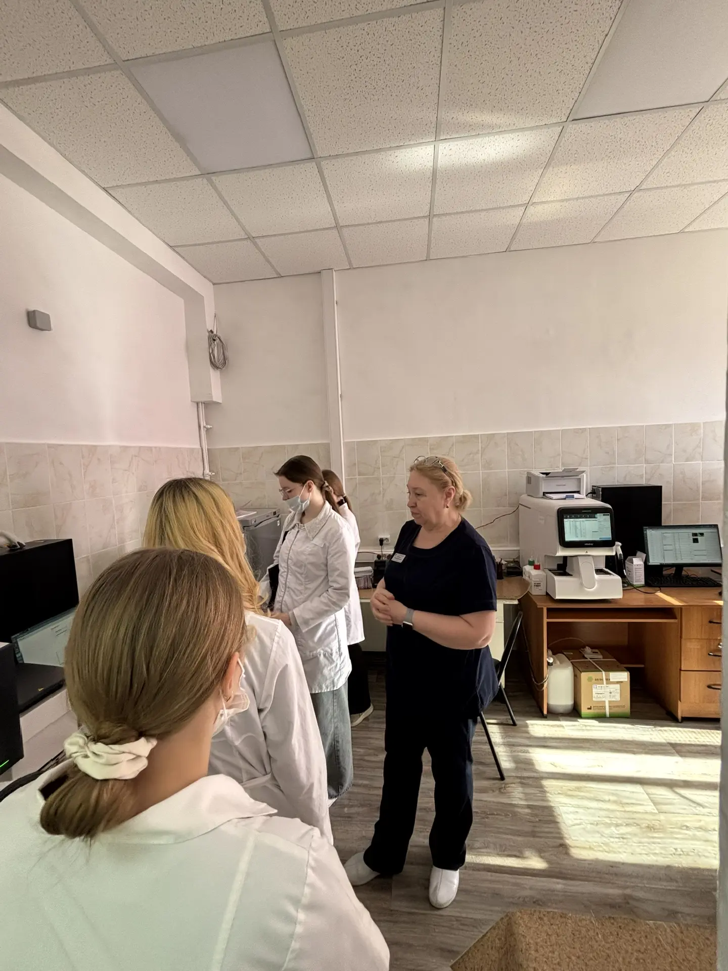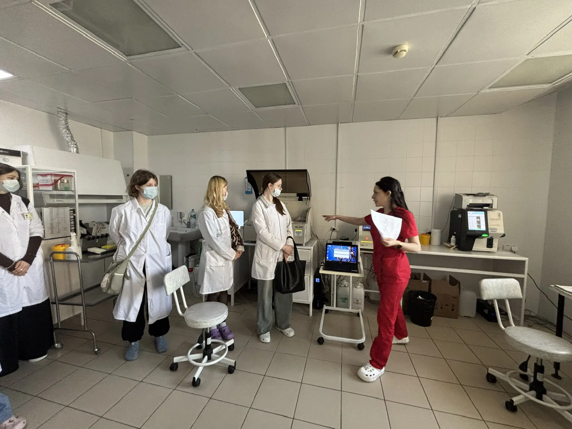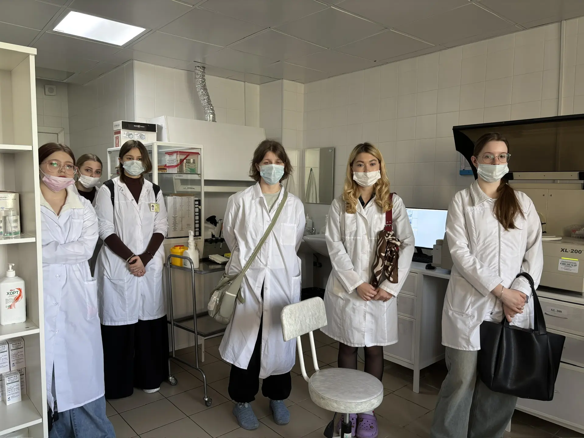Студенты посетили лаборатории различного профиля, включая гематологическую, биохимическую и гистологическую, где ознакомились с организацией работы и особенностями проведения исследований.