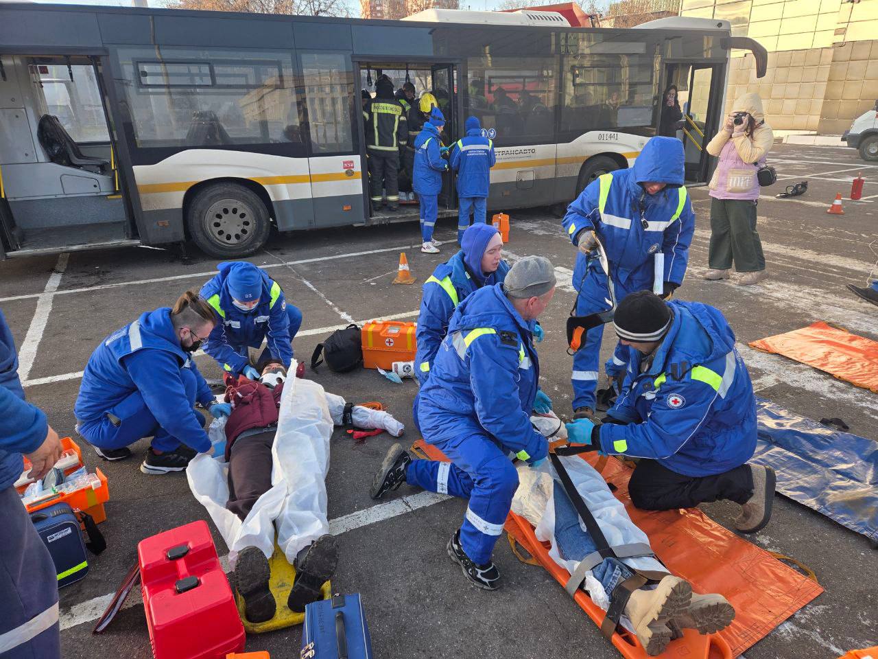 В целях отработки алгоритма действий сотрудников Московской областной станции скорой медицинской помощи, экстренных служб и медицинских организаций была смоделирована чрезвычайная ситуация «ДТП с рейсовым автобусом». По результатам тренировки проведен брифинг, где обсуждались сильные стороны и недочеты действий сотрудников при возникновении чрезвычайных ситуаций.