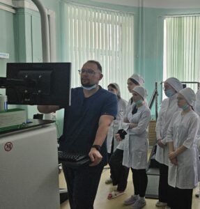 Для студентов была организована экскурсия по основным отделениям больницы: приемному, травматологическому, ортопедическому и отделению реабилитации.