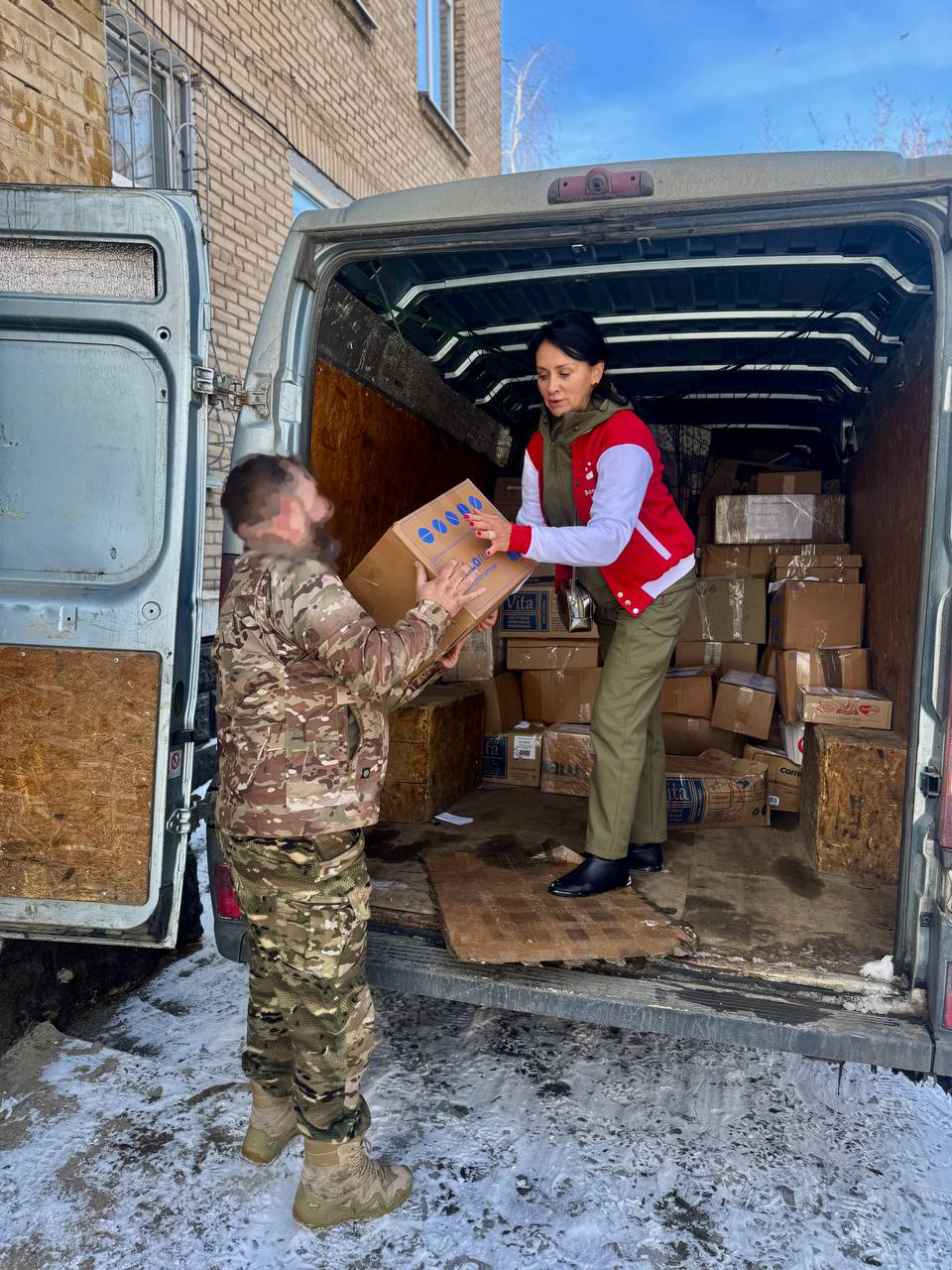 Также гуманитарная помощь была доставлена жителям недавно освобождённой территории города Курахово. Населению переданы продукты питания, одежда, а также подарки мужчинам ко Дню защитника Отечества.