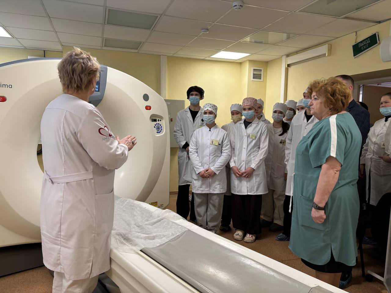 Программа включала посещение ключевых отделений поликлиники. В кабинете компьютерной томографии специалисты продемонстрировали современное диагностическое оборудование и рассказали о принципах его работы. Студенты узнали, как проводятся исследования и какие заболевания можно выявить с помощью КТ.