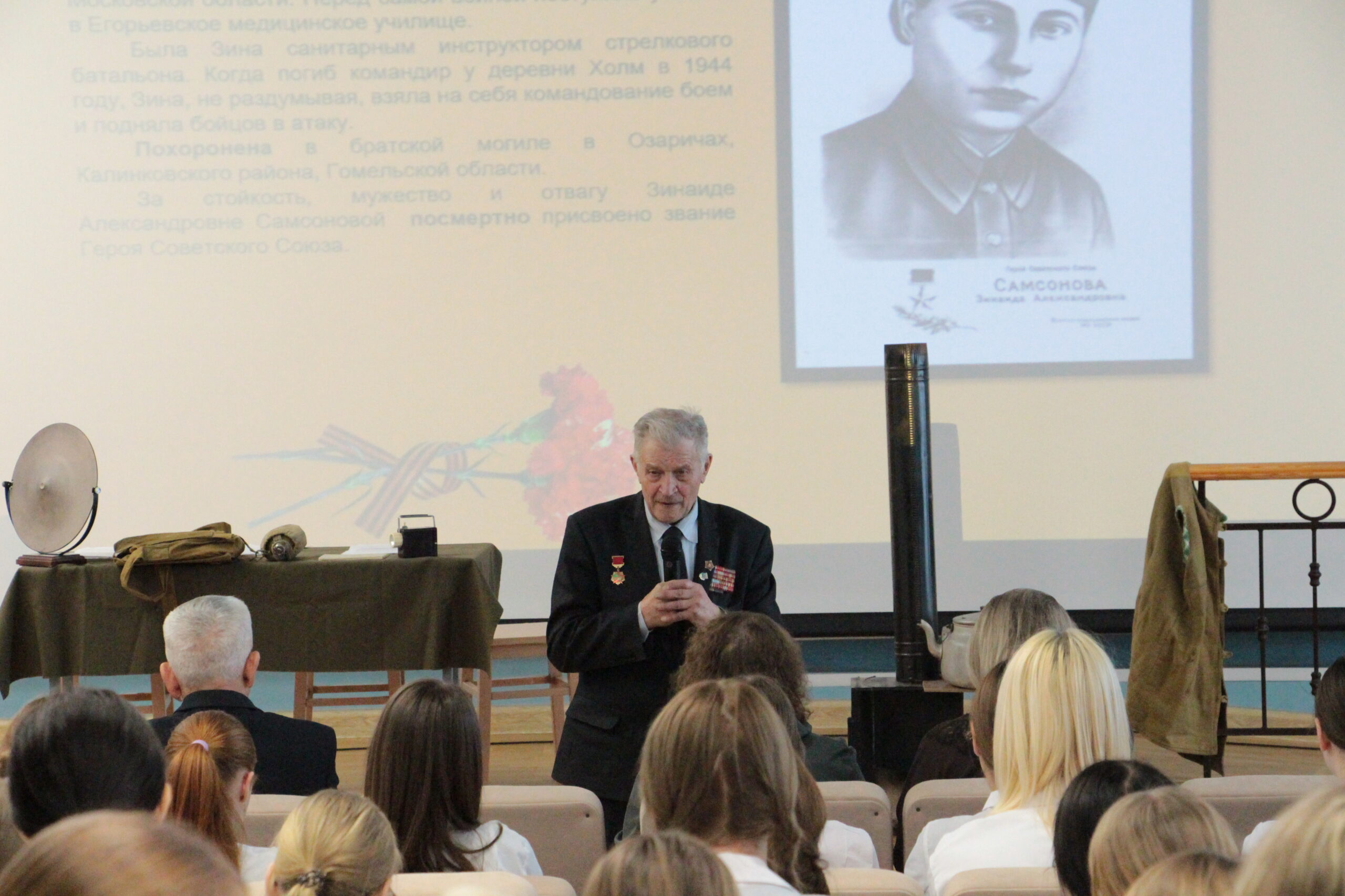 С напутственными словами к студентам обратились почётные гости: заместитель Главы муниципального округа Егорьевск Леликова Наталья Александровна, председатель городского Совета ветеранов войны, труда, Вооружённых сил и правоохранительных органов Кислов Георгий Георгиевич, член городского Совета ветеранов войны, труда, Вооружённых сил и правоохранительных органов Тупиков Александр Иванович. Их выступления подчеркнули важность сохранения исторической памяти и уважения к подвигу защитников Отечества.