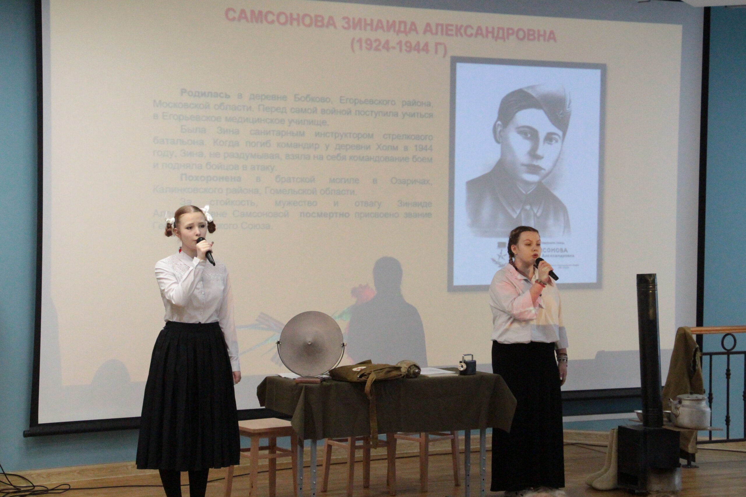27 января 2026 года в Егорьевском филиале имени Героя Советского Союза Зинаиды Александровны Самсоновой Московского областного медицинского колледжа состоялся вечер памяти, посвящённый подвигу Зинаиды Александровны Самсоновой, погибшей 27 января 1944 года. Мероприятие было приурочено к годовщине её гибели и стало значимым событием в патриотическом воспитании студентов.